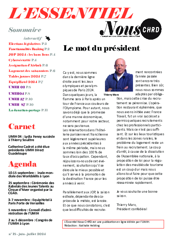 Observatoire mensuel des performances hôtelières UMIH/GNC - MKG Juin 2024
