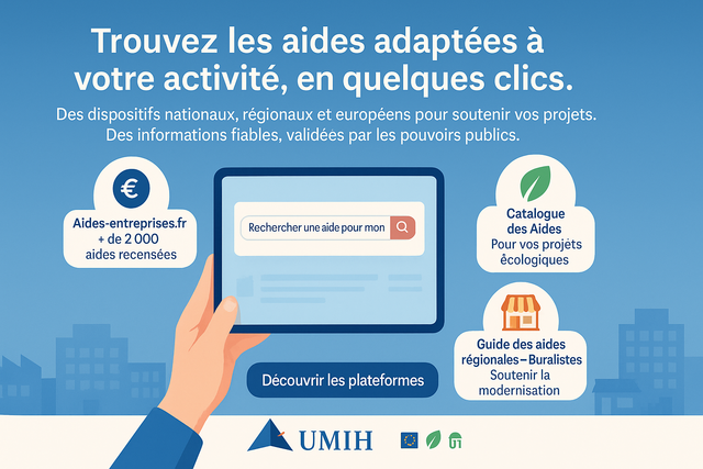 Facile d’accès, le site Aides-entreprises.fr répertorie plus de 2 000 aides publiques, gratuites et adaptées à vos besoins. Le site centralise, en un seul endroit, toutes les aides financières disponibles partout en France, du niveau local au niveau européen. À travers une recherche simple, vous identifiez rapidement les dispositifs adaptés, que ce soit pour la création, la reprise, la modernisation, la transition écologique ou le développement commercial de votre entreprise.