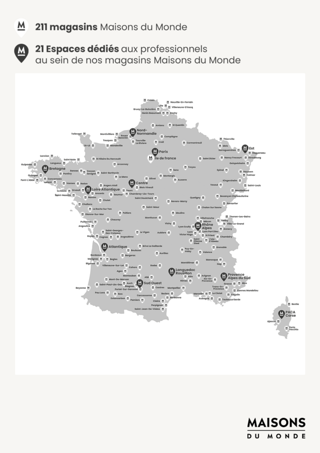 - Auprès de nos experts du service professionnel : par téléphone +33 2 51 71 55 87 ou par mail business.fr@maisonsdumonde.com